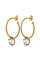 ELANA - ett vackert hoop-örhänge, skapad med ett avtagbart hänge som har en facetterad hjärtformad kristall fäst i en metalldel. Den vridna hoopen har en diameter på cirka 26 mm. Kristallhänget har en diameter på 8 mm. Visas här i en blank guldfinish med vita kristaller. Handgjord nickel-fri dansk design.
