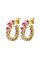 KOLOS - ett U-format crystal hoop-stiftörhänge, satt med flera runda facetterade kristaller. Kristallerna är graderade i storlekar, vilket gör detta design ovanligt och anmärkningsvärt. Ca längd 24 mm. Korpuset är tillverkat av polerad mässing, och stiftet är i kirurgiskt stål. Visas här i rosa färger och guldfinish. DANSK DESIGN - fri från kadmium, bly och nickel.